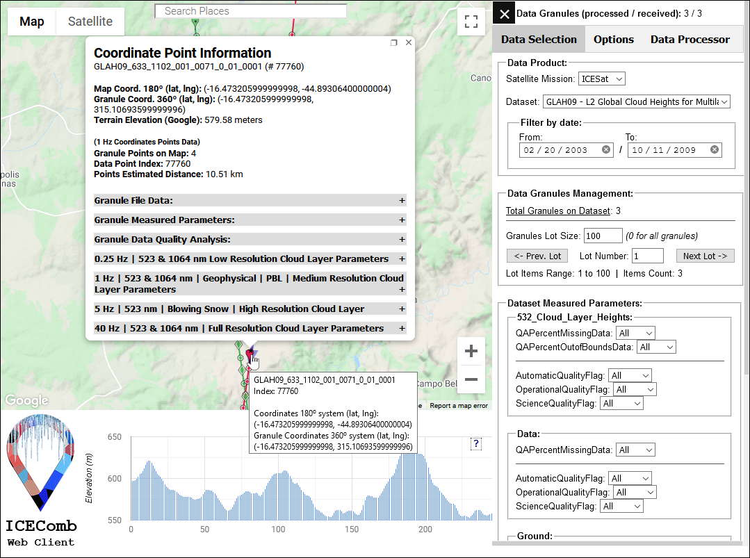 ICESat / ICESat-2 data processor, analyser and visualiser